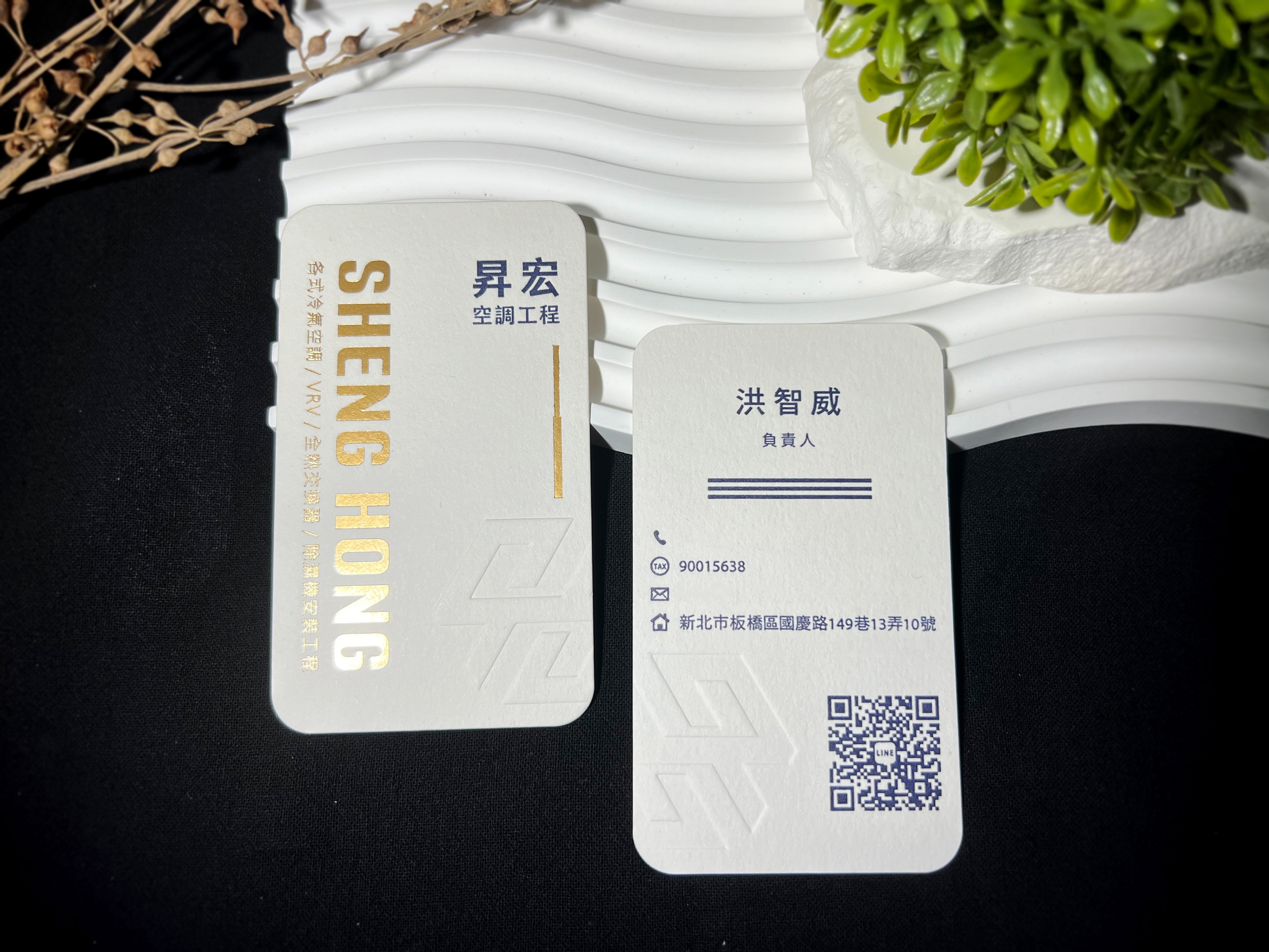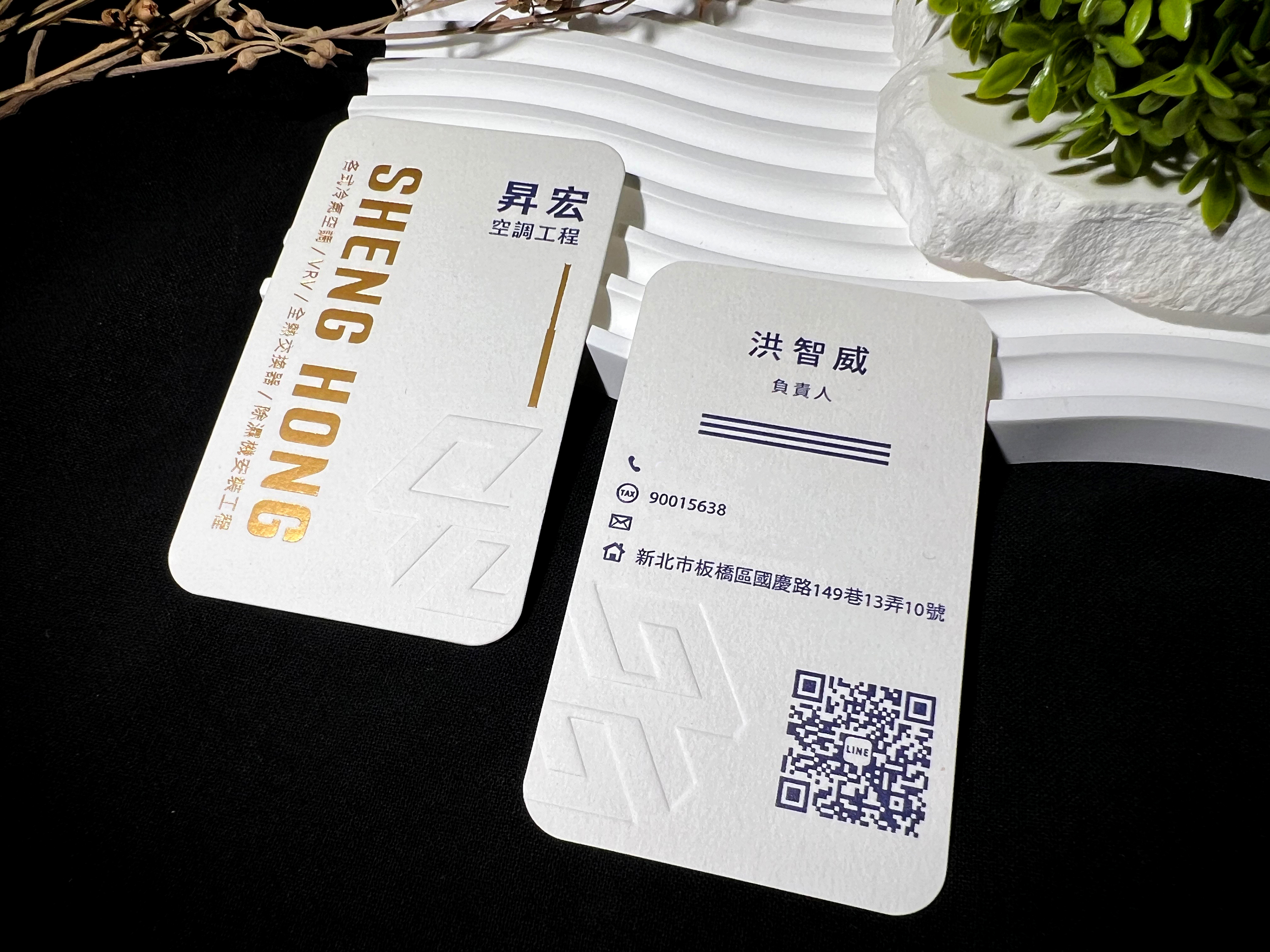 加工: 正面打凸、正面燙霧麥金、正反面壓印1色、四邊倒圓角