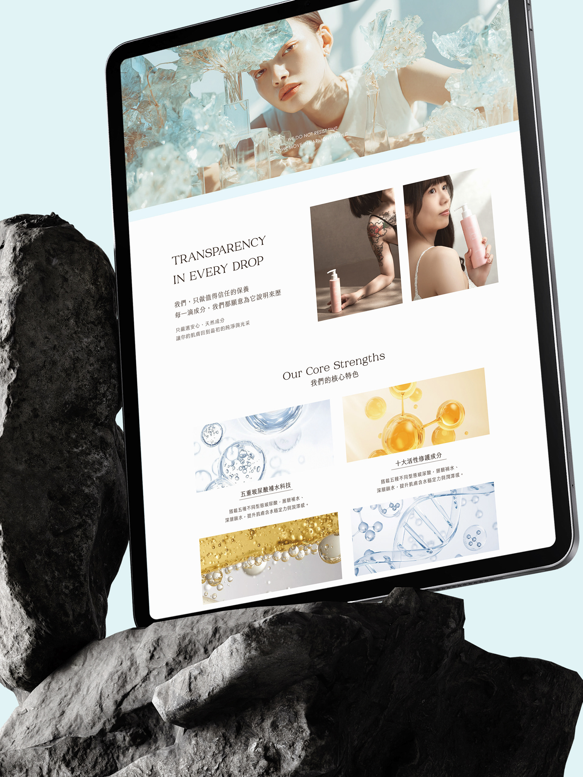 本包裝設計融合日式清新美學,以流動水紋色塊線條與輕盈泡泡作為視覺語言,象徵過碳酸鈉釋放活氧泡泡的清潔力,同時傳遞無負擔、純淨洗淨的體驗。