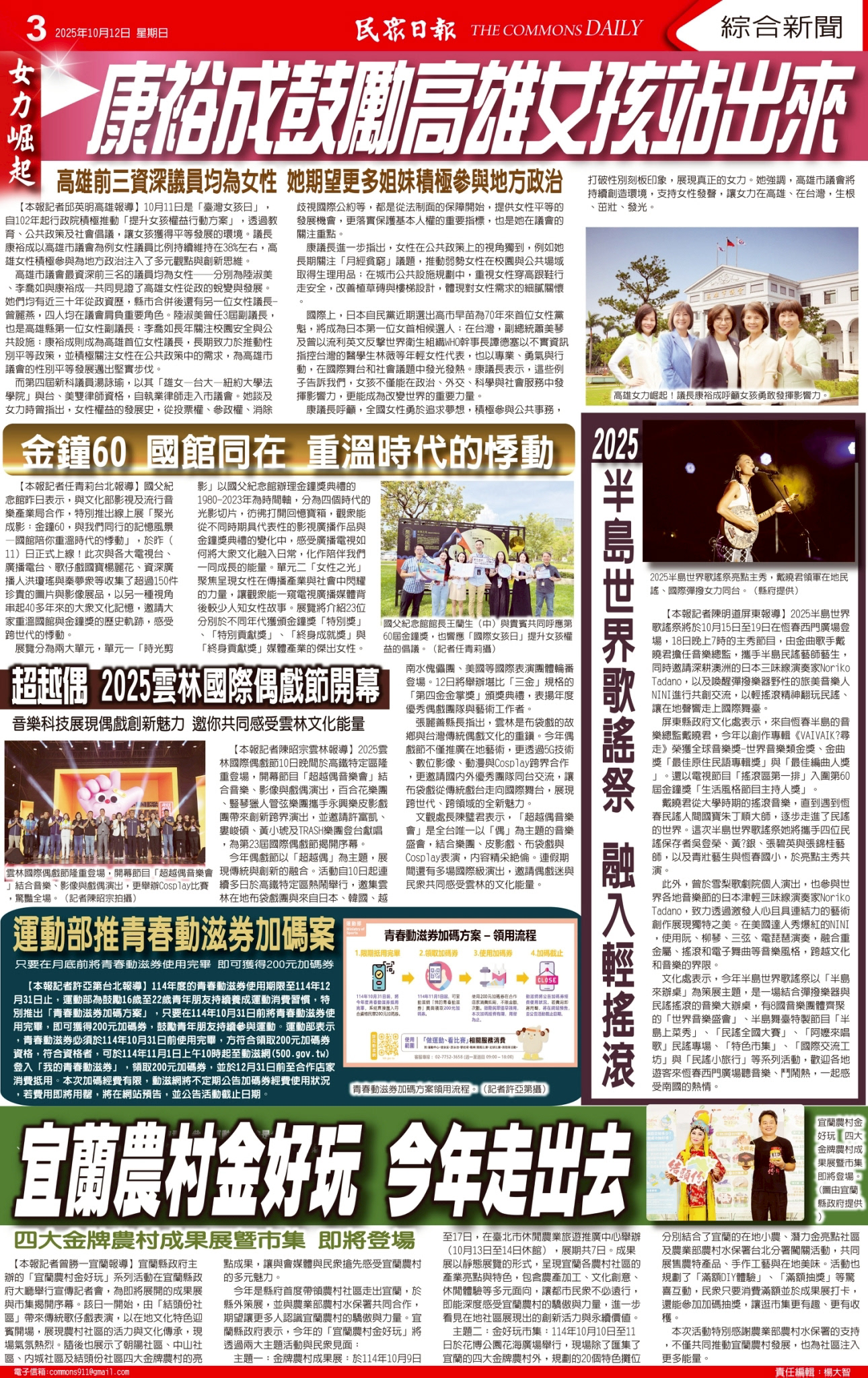 華視新聞 : https://news.cts.com.tw/cna/life/202510/202510112522111.html