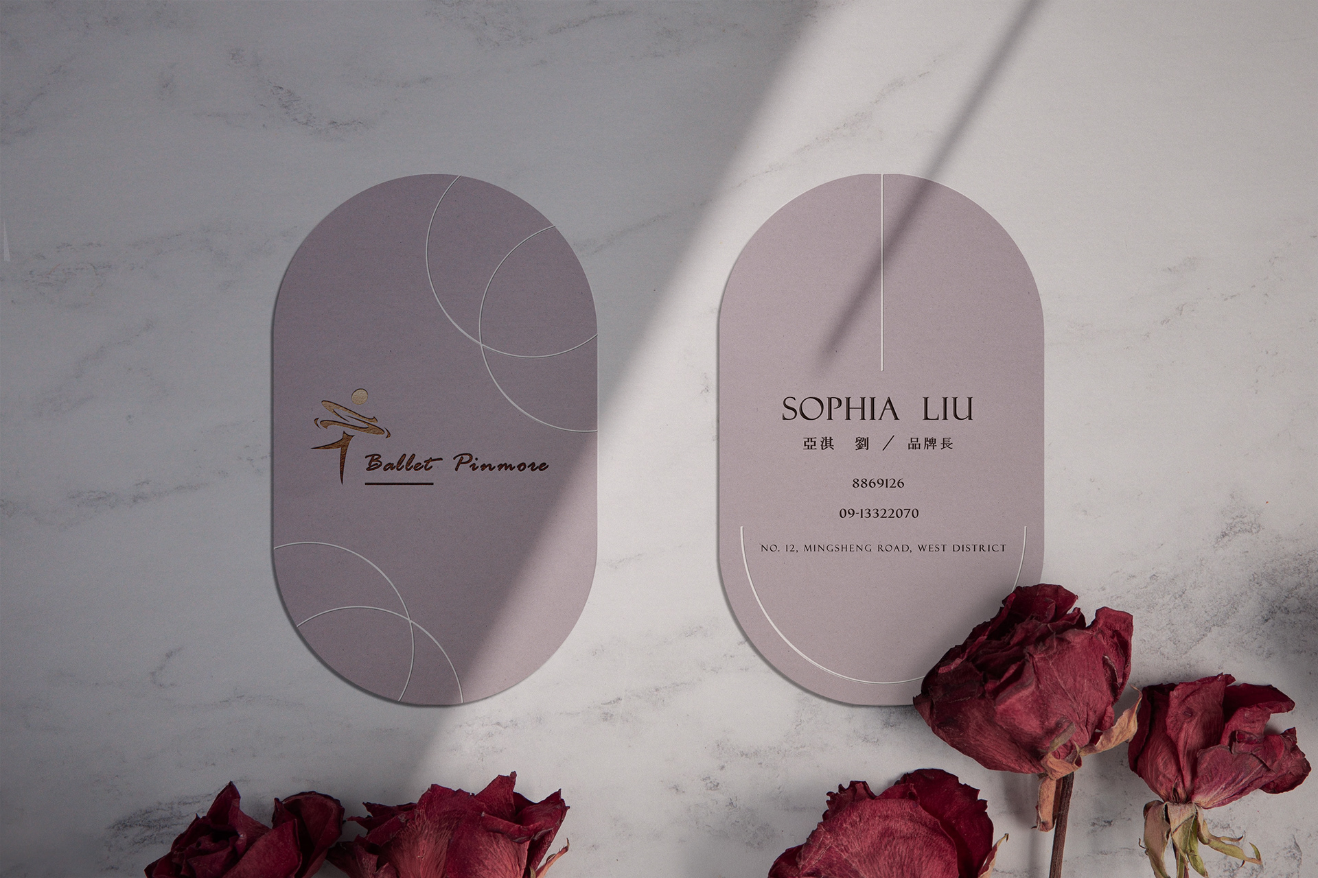 整體logo設計,使用較抽象的簡約線條,結合優雅地薰衣草紫色的漸層色塊配色做為整體視覺搭配。而logo則設計成一位翩翩起舞,旋轉跳躍的巴芭蕾舞者,透過舞者外環的漩渦形勾勒出舞蹈的旋轉動態線條及軌跡。