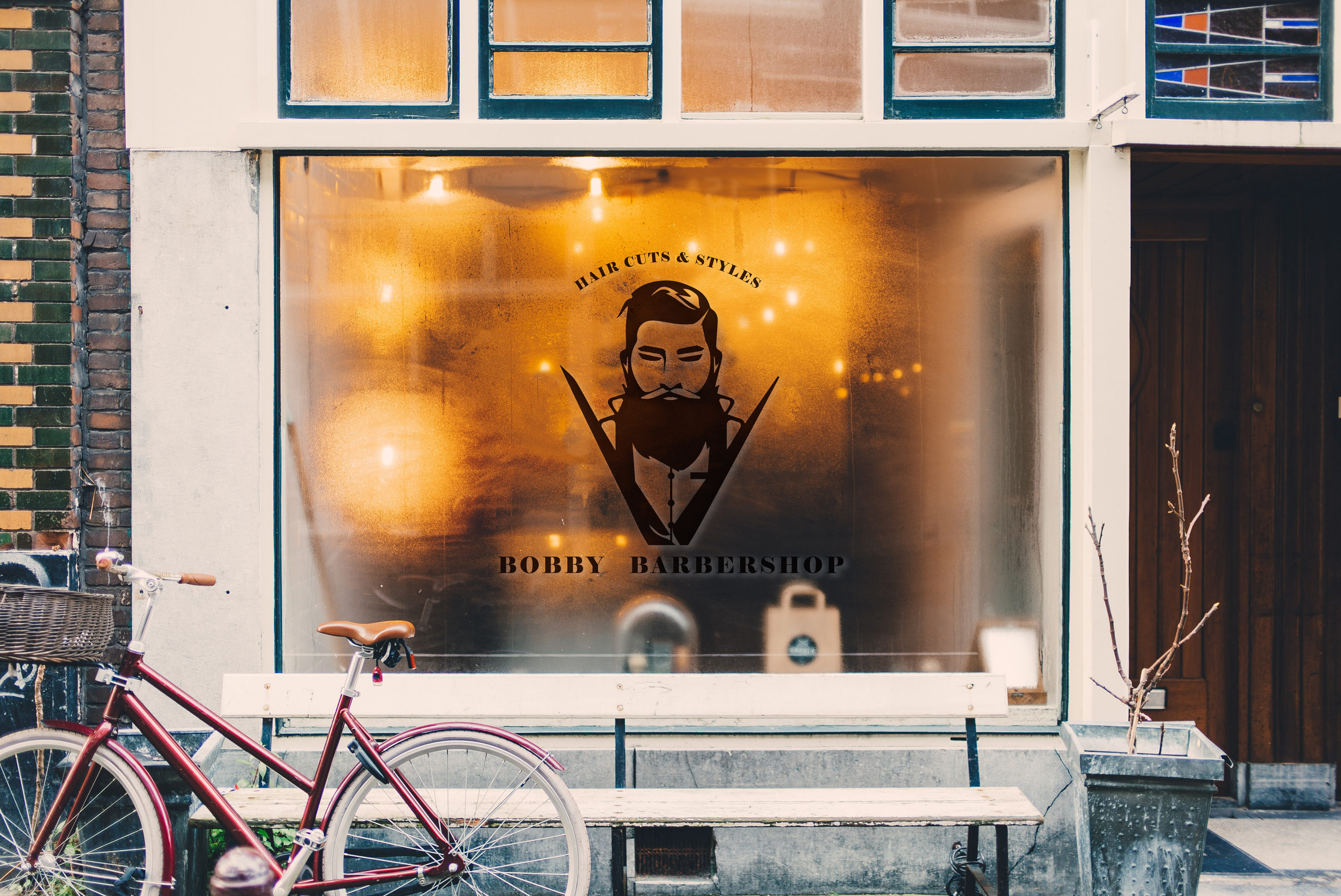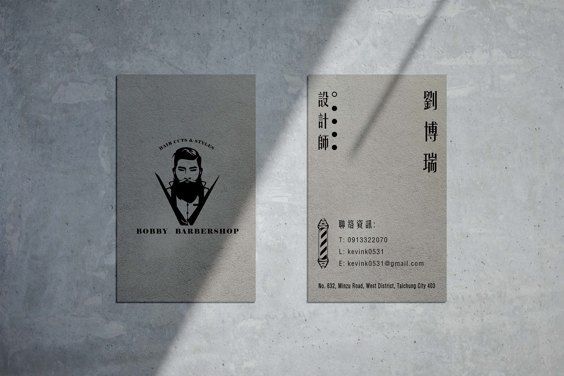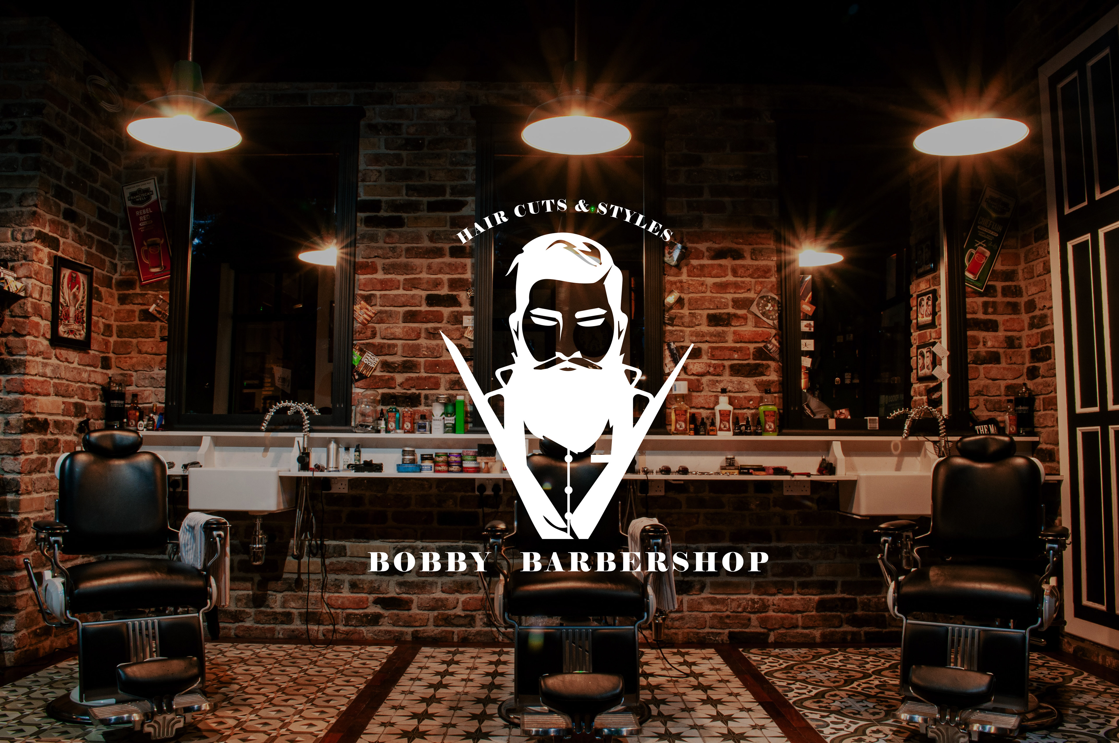 整體logo設計,從剪刀倒V做框架,就像是透過他那才華,俐落地用剪刀刻劃出每一位帥氣的歐美紳士型男輪廓!而旁邊的領子用雙B做呈現,白色的地方就是光影的表現,同時也呈現B的字型,而雙B就是Bobby Barbershop 的縮寫。