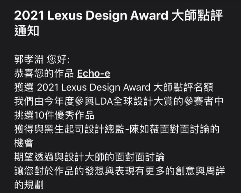 2021 Lexus Design Award 台灣區前十