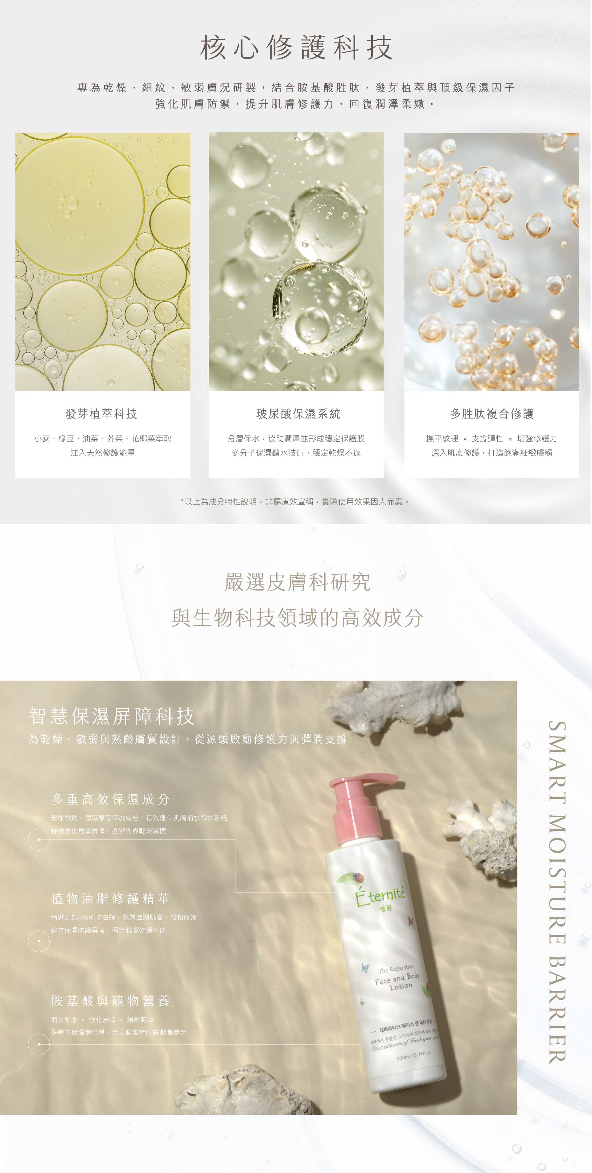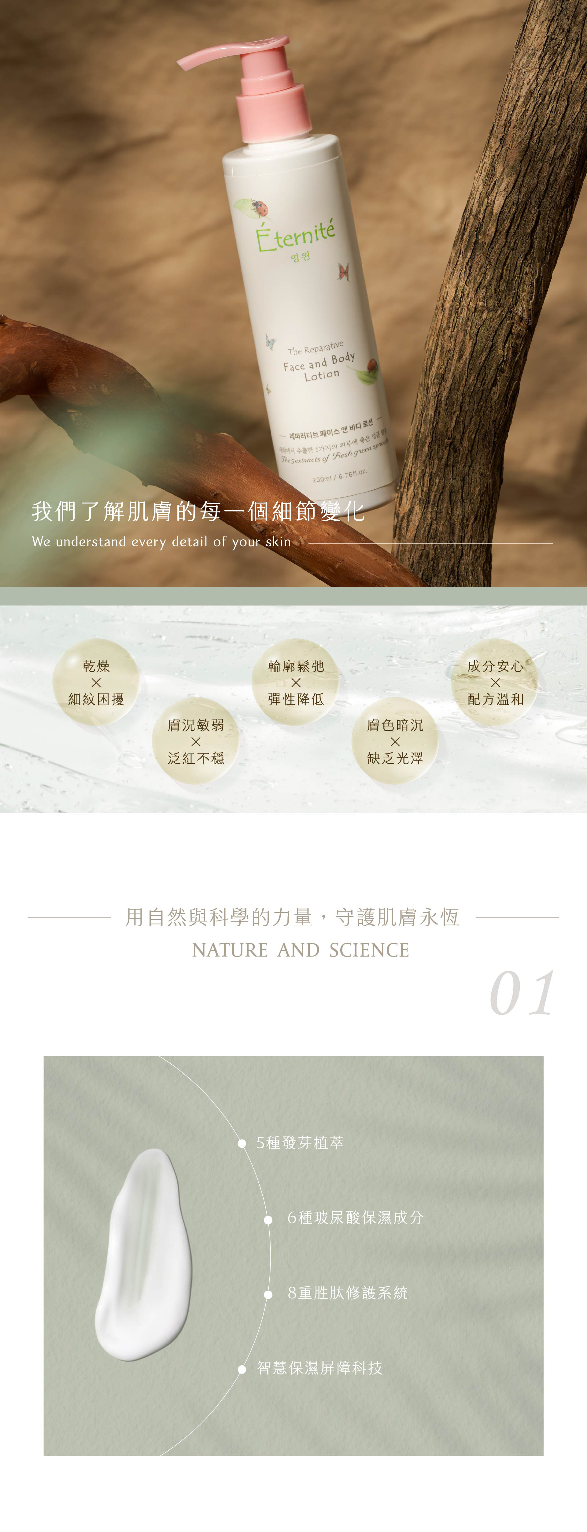 透過科學演算精微調整配方比例,協助養分穩定吸收、提升肌膚屏障力
