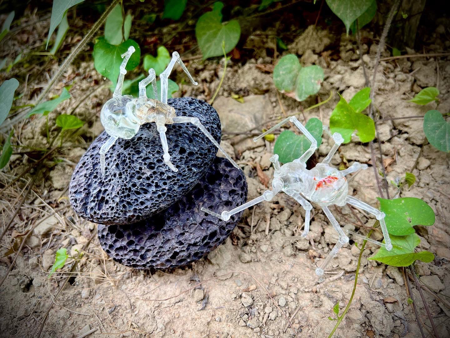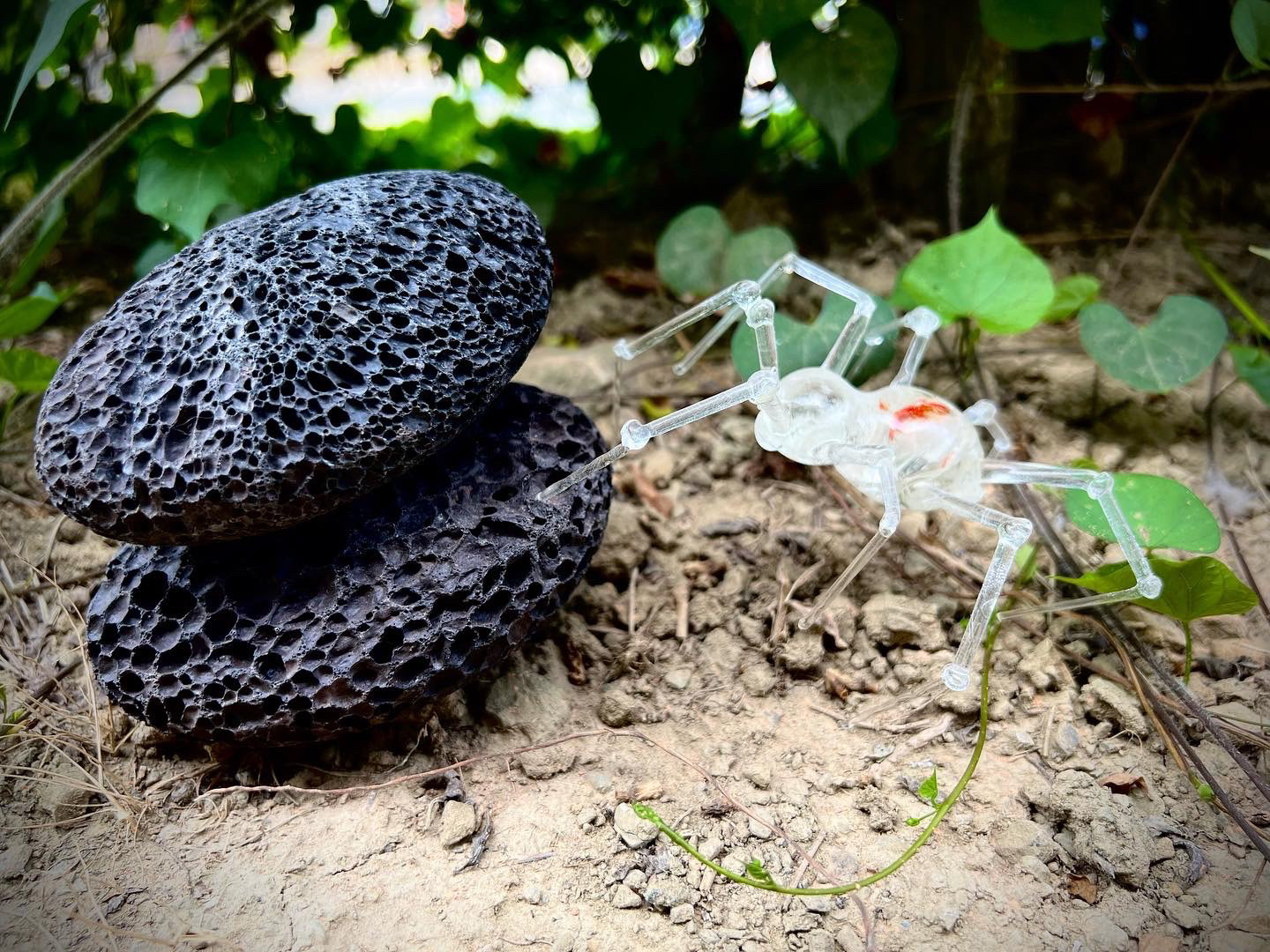 理念:通常大部分的蜘蛛,都是透過結網、隱匿暗處等待獵物上門,只因這是牠們的天性。希望透過此作品 — 蜘蛛出走的創作意象,表達:有時候我們也可以走出自己舒適區或是跳脫大家的社會價值覺得你就該怎樣做事,嘗試不同的方法以及事務來面對不同的挑戰,有時候會在路上認識的不同的機會以及貴人協助你完成你的目標!