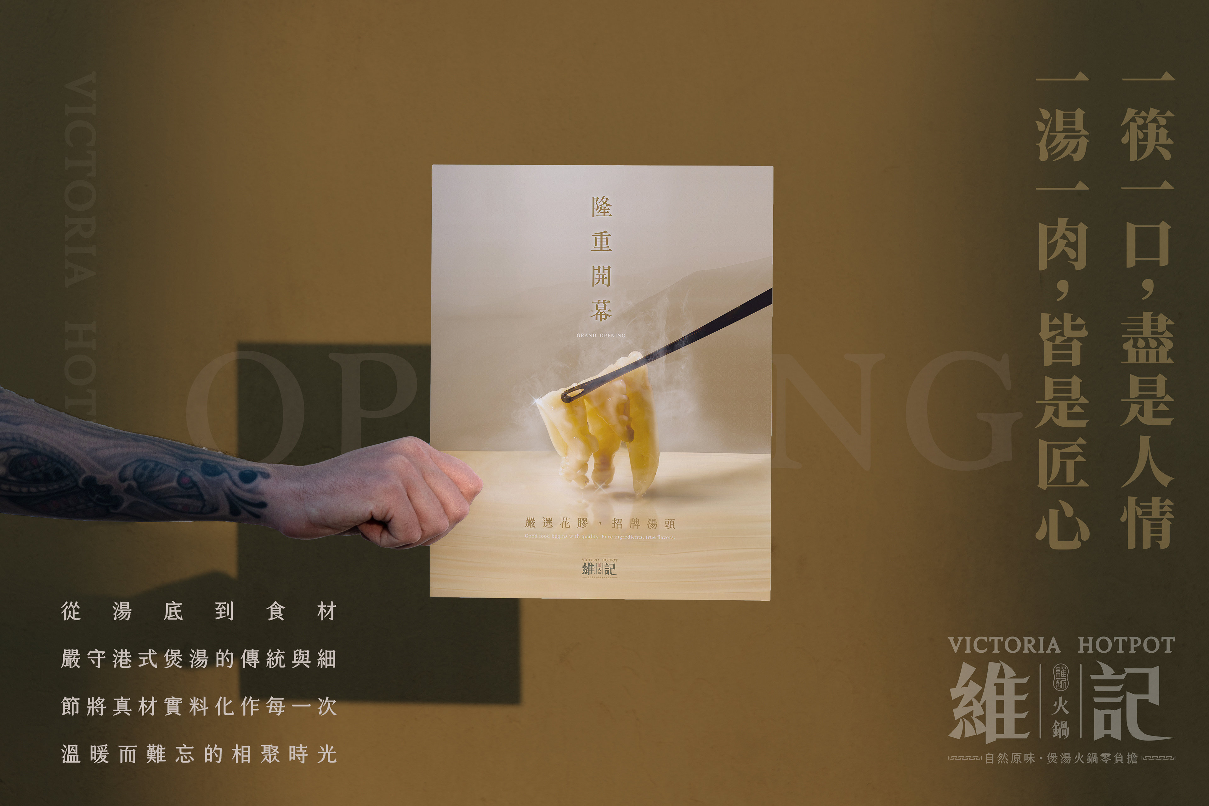 它不僅是一個標誌,而是一張寫給時間的請柬、一方刻在記憶裡的印章。 設計靈感源自港式煲湯火鍋的 傳統工藝。那一鍋湯頭,得慢火細燉,需耐心、需時間、需技藝;而這份精神,也被轉化進 LOGO 的筆劃與色彩中。