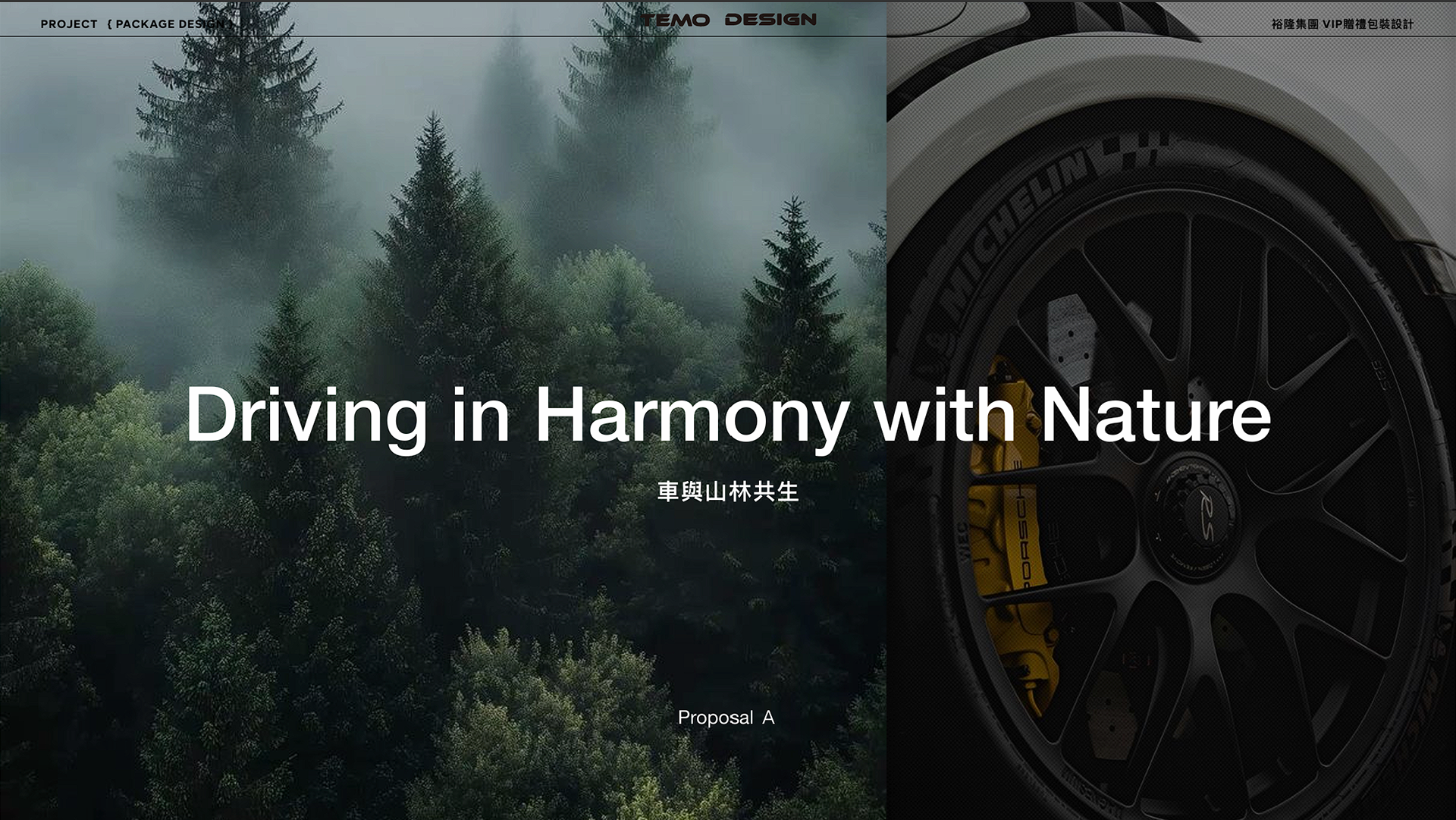 本次插畫設計以苗栗⼭林為靈感主軸, 融合台灣特有的台 灣欒樹葉片的⾃然紋理與輪廓,傳遞裕隆集團「永續在地」的品牌精神。 選⽤台灣地貌中的「⼭線紋理」象徵根植⼟地的穩定⼒ 量,搭配如年輪般的圓形層層堆疊,喚起時間積累與企業 成長的記憶感。 中央萌芽的樹苗,不只是⾃然⽣長的象徵,也回應裕隆對 未來環境永續與綠能移動的承諾,⽽整體包裝表層選⽤如 再⽣紙般的溫潤肌理,搭配⾞胎⾏進意象的曲線描繪,讓 「⾞與⼭林共⽣」的畫⾯不⾔⽽喻。 這份專為貴賓設計的伴⼿禮,如同⼀段旅程的起點,讓我 們在呼吸之間感受⼟地的低語,也⾒證裕隆向前的⾜跡。